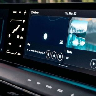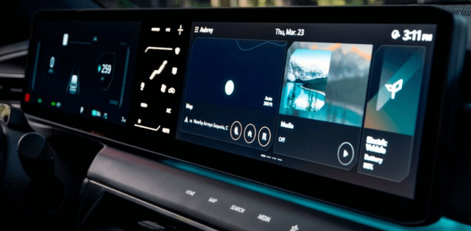 • Retrovisores externos digitais por câmeras (DSM), pintados em black piano, com função rebatimento elétrico e repetidores das setas integrados em LED
