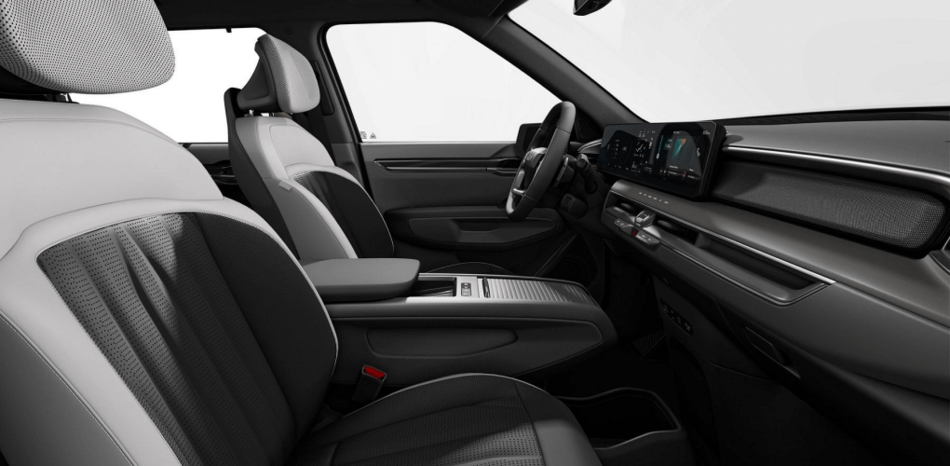 Teto solar dianteiro com acionamento elétrico • Retrovisores externos digitais por câmeras (DSM), pintados em black piano, com função rebatimento elétrico e repetidores das setas integrados em LED • Maçanetas externas tipo Flush automáticas na cor do veículo sendo as dianteiras com funcionamento por toque • Motor Elétrico síncrono de imã permanente (IPMSM) • Alavanca de câmbio Tipo Coluna (Shift by Wire) com botão "Start/Stop" para partida do motor • Ar-condicionado digital automático "Tri Zone" com controles independentes frontais, traseiro e com filtro antipólen e ionizado